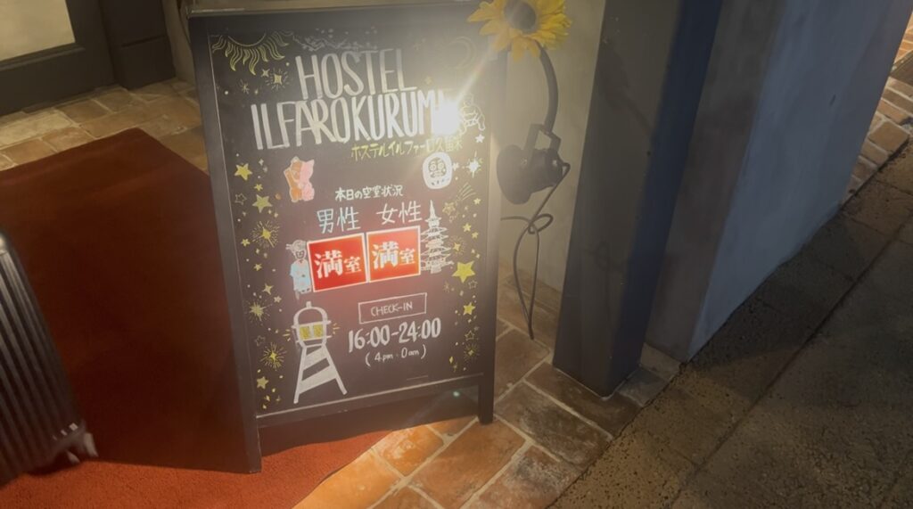 泊まった宿:ホステルイルファーロ久留米