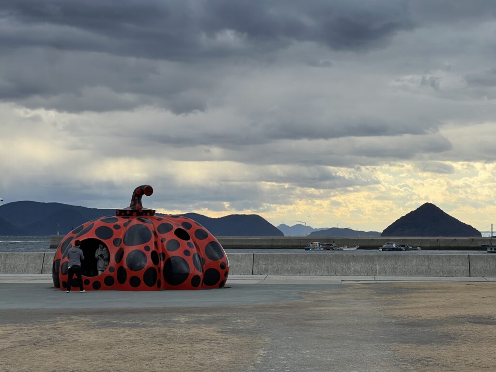 帰る前に、直島といえばの赤かぼちゃを撮影。