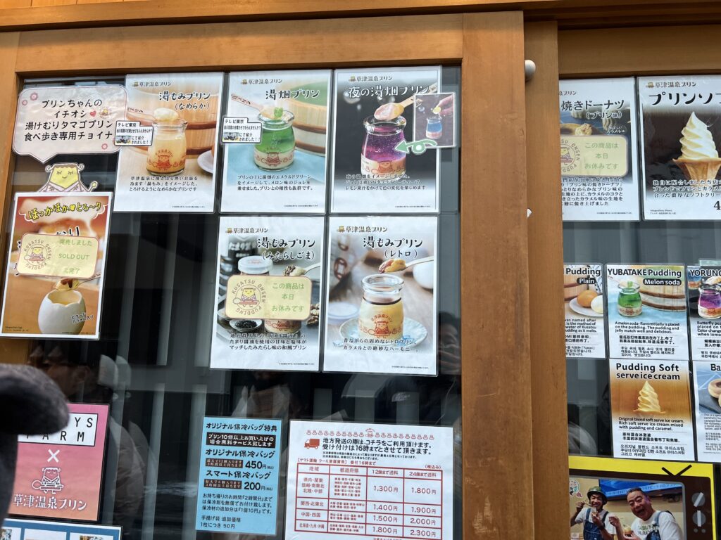 温泉街とプリンの組み合わせは不思議ですが、草津ではすっかり定番になっているように感じました。