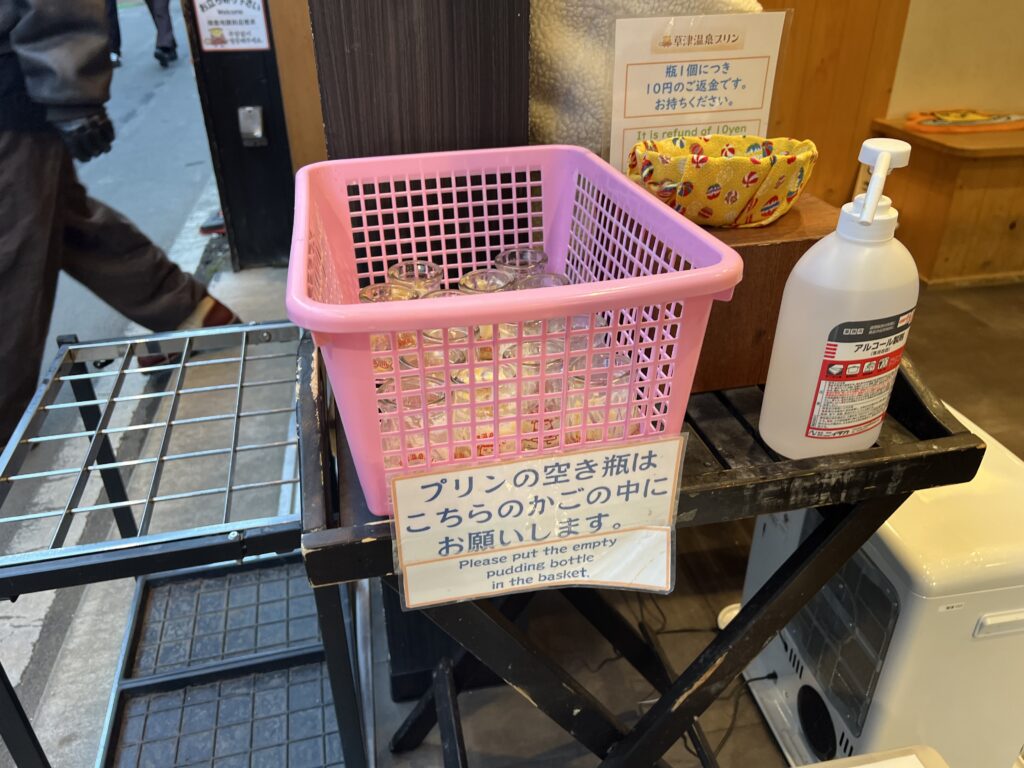 このお店で特に印象に残ったのが、プリン瓶の回収システムです。