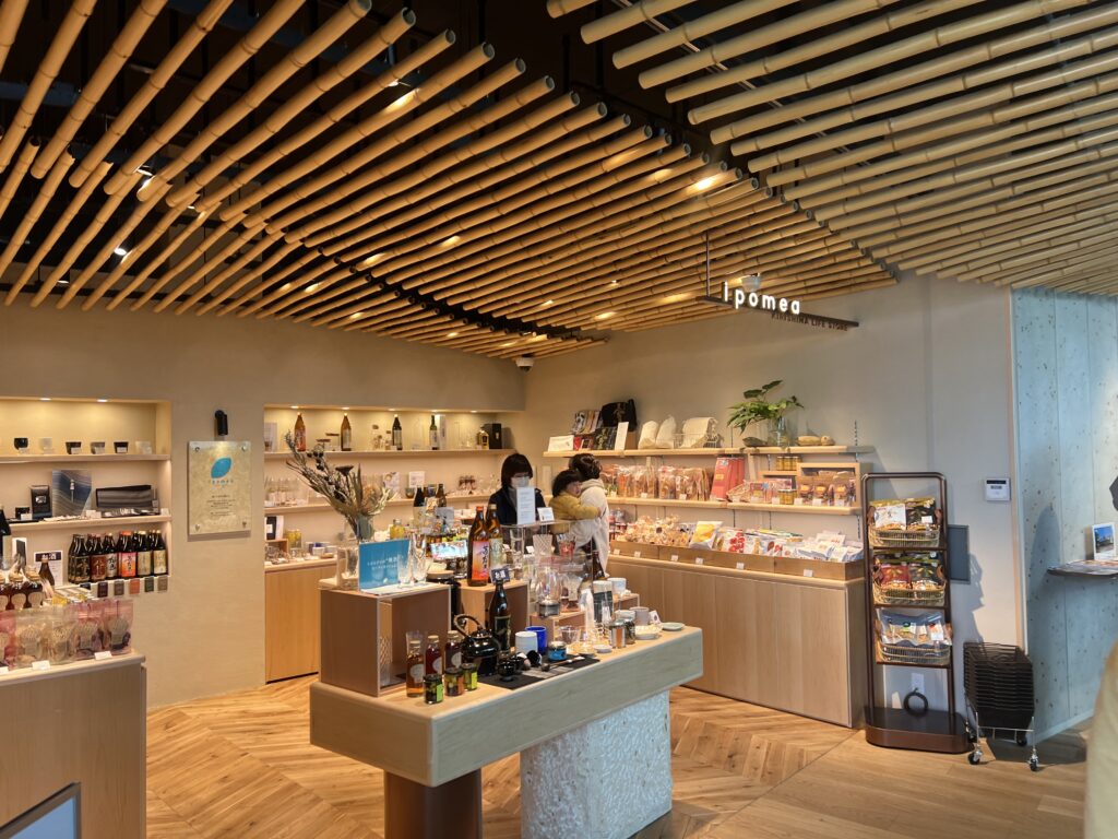 ショップエリアには霧島酒造の商品がずらりと並び、焼酎や関連グッズを眺めるだけでも楽しい空間。