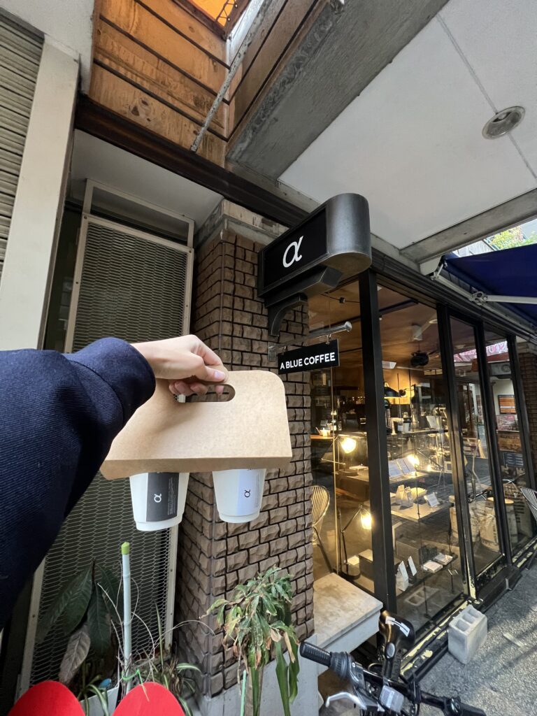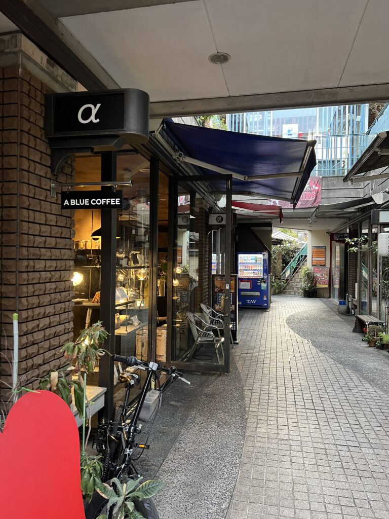 「A BLUE COFFEE」の看板がしっかり置いてあるので見つけやすいです。